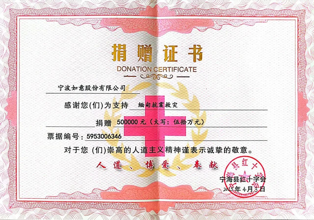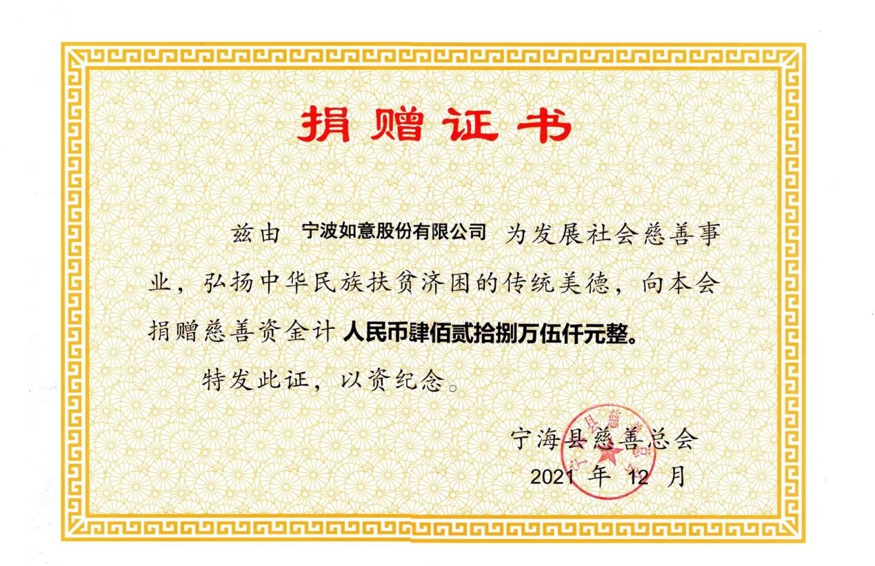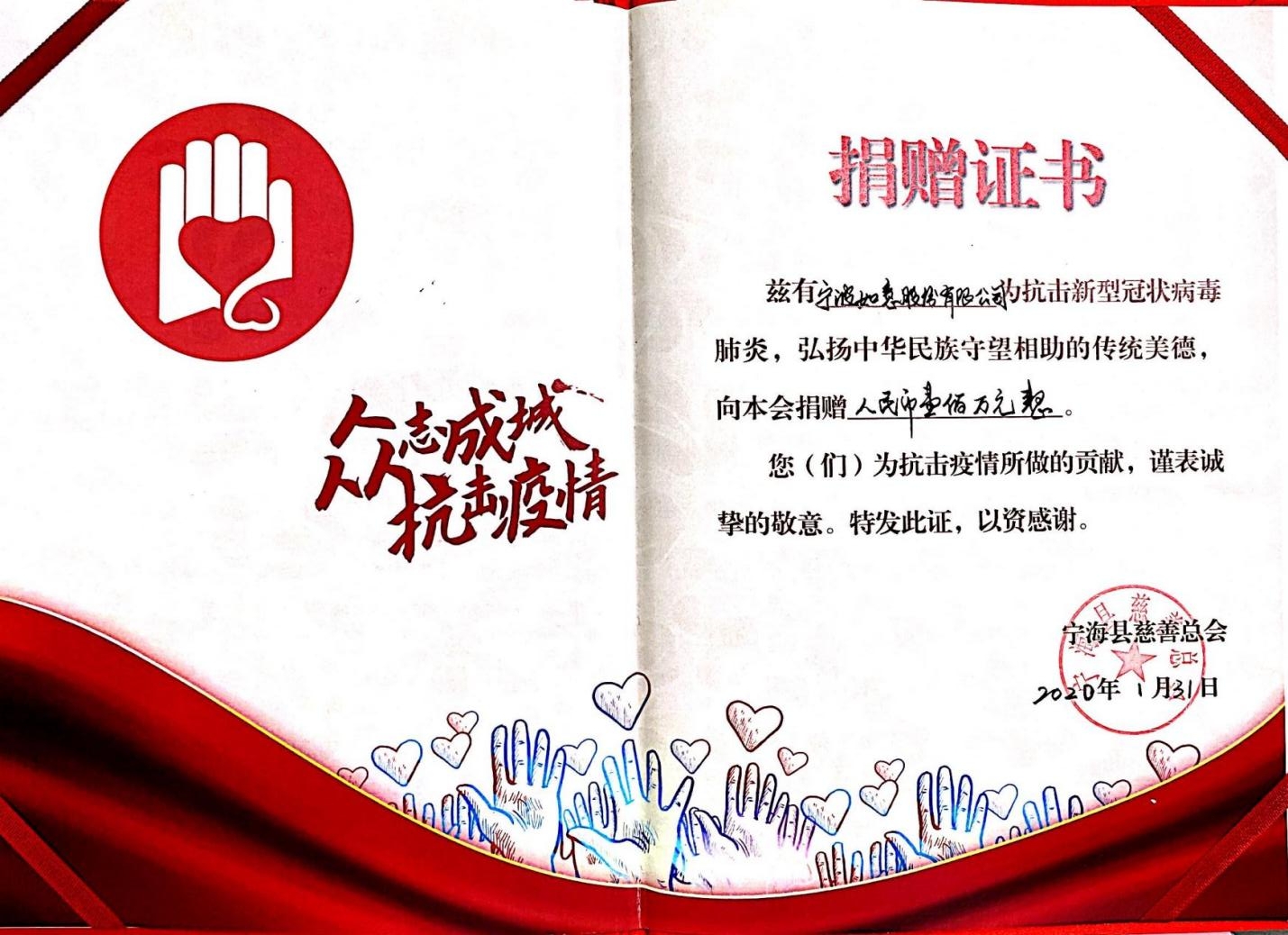 Ningbo Ruyi fully implemented containment measurements after the outbreak of COVID-19 epidemic and donated 1.1 million yuan to Wuhan province through the Ninghai Charity Federation.