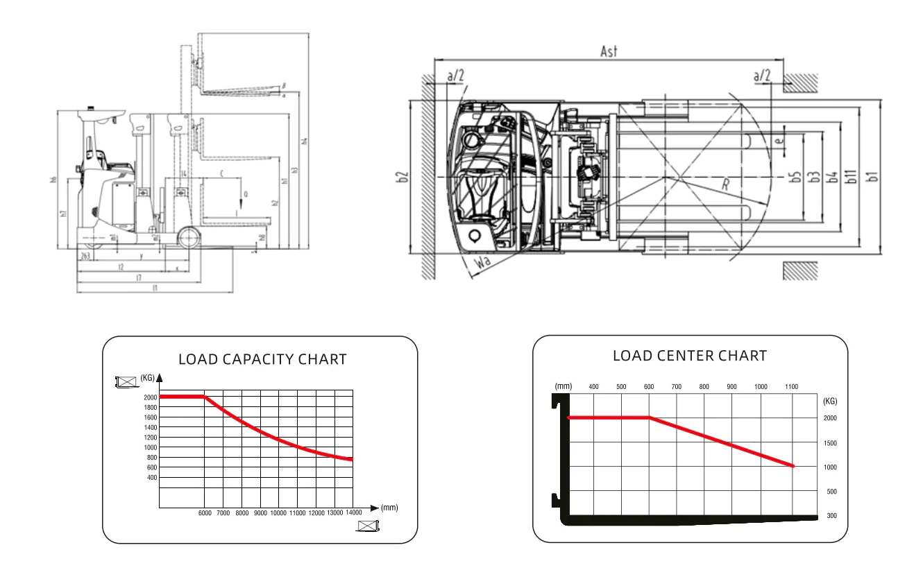 Excellent Maneuverability: Thanks to electric drive and an advanced steering system, electric reach trucks have a small turning radius and are highly maneuverable, making them particularly suitable for fast and precise movement in congested loading/unloading areas or between racks.